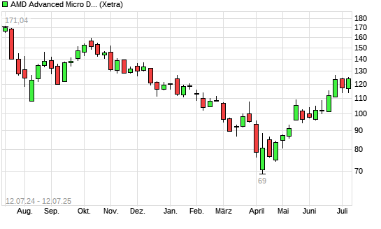 Mit dem Anstieg auf 125,62 EUR hat die AMD-Aktie (ISIN US0079031078) am 11.07.2025 ein neues 6-Monats-Hoch erreicht und damit den Kurs vom 10.07.2025 eingestellt.Die AMD-Aktie befindet sich ...weiterlesen