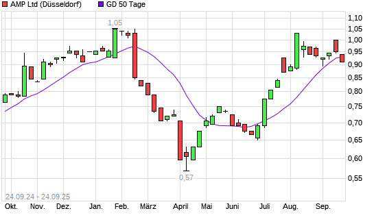 Mit dem Rücksetzer auf 0,92 EUR hat die AMP-Aktie am 23.09.2025 die 50-Tage-Linie nach unten gekreuzt.