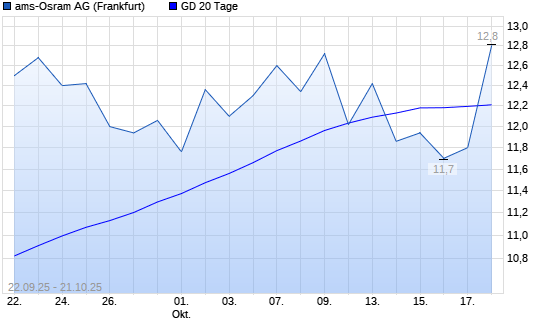 Mit dem Anstieg auf 12,94 EUR hat die AMS-Aktie am 20.10.2025 die 20-Tage-Linie nach oben gekreuzt.