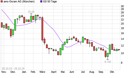 Mit dem Anstieg auf 10,85 EUR hat die AMS-Aktie am 24.10.2024 die 50-Tage-Linie nach oben gekreuzt.