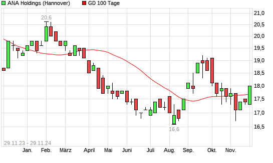 Mit dem Anstieg auf 17,80 EUR hat die ANA Holdings-Aktie am 28.11.2024 die 100-Tage-Linie nach oben gekreuzt.