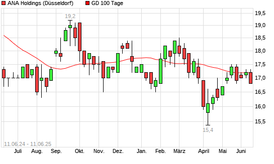 Mit dem Anstieg auf 17,30 EUR hat die ANA Holdings-Aktie am 10.06.2025 die 100-Tage-Linie nach oben gekreuzt.