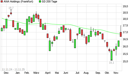 Mit dem Anstieg auf 17,00 EUR hat die ANA Holdings-Aktie am 10.11.2025 die 200-Tage-Linie nach oben gekreuzt.