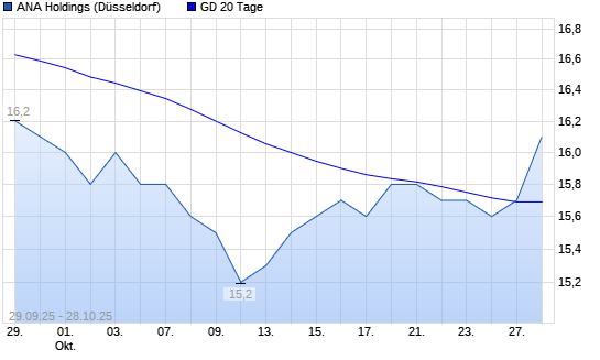 Mit dem Anstieg auf 15,80 EUR hat die ANA Holdings-Aktie am 27.10.2025 die 20-Tage-Linie nach oben gekreuzt.Die ANA Holdings-Aktie befindet sich seit dem 29.08.2025 im langfristigen Abwärtstrend ...weiterlesen