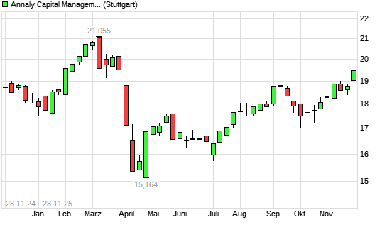 Mit dem Anstieg auf 19,47 EUR hat die ANNALY CAPITAL MANAGEMENT-Aktie (ISIN US0357108390) am 27.11.2025 ein neues 6-Monats-Hoch erreicht und damit den Kurs vom 26.11.2025 eingestellt.
