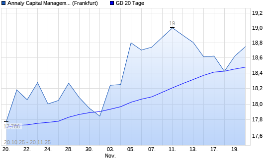 Mit dem Anstieg auf 18,62 EUR hat die ANNALY CAPITAL MANAGEMENT-Aktie am 19.11.2025 die 20-Tage-Linie nach oben gekreuzt.