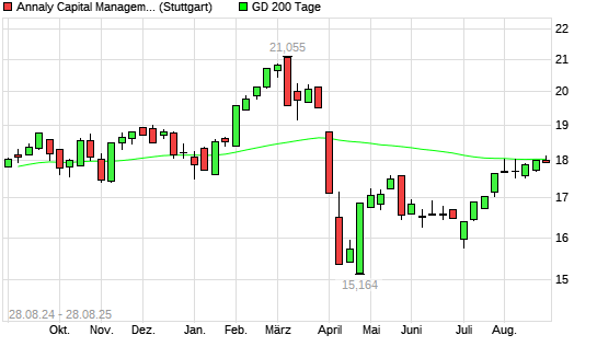 Mit dem Anstieg auf 18,26 EUR hat die ANNALY CAPITAL MANAGEMENT-Aktie am 27.08.2025 die 200-Tage-Linie nach oben gekreuzt.