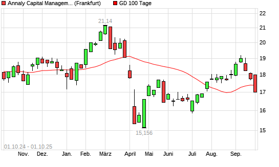 Mit dem Rücksetzer auf 17,25 EUR hat die ANNALY CAPITAL MANAGEMENT-Aktie am 30.09.2025 die 100-Tage-Linie nach unten gekreuzt.