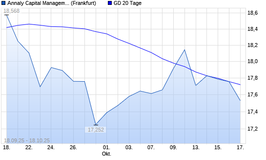 Mit dem Rücksetzer auf 17,53 EUR hat die ANNALY CAPITAL MANAGEMENT-Aktie am 17.10.2025 die 20-Tage-Linie nach unten gekreuzt.Die ANNALY CAPITAL MANAGEMENT-Aktie befindet sich seit dem 13.10.2025 ...weiterlesen