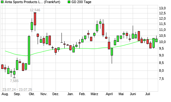 Mit dem Anstieg auf 10,14 EUR hat die ANTA Sports Products-Aktie am 22.07.2025 die 200-Tage-Linie nach oben gekreuzt.
