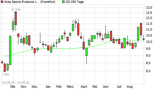 Mit dem Anstieg auf 10,20 EUR hat die ANTA Sports Products-Aktie am 03.09.2025 die 200-Tage-Linie nach oben gekreuzt.