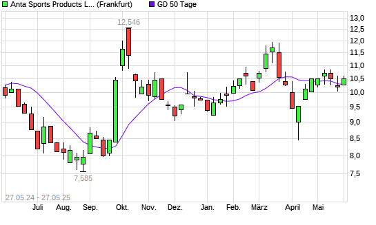 Mit dem Anstieg auf 10,28 EUR hat die ANTA Sports Products-Aktie am 26.05.2025 die 50-Tage-Linie nach oben gekreuzt.