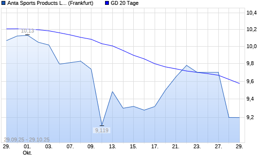 Mit dem Rücksetzer auf 9,20 EUR hat die ANTA Sports Products-Aktie am 28.10.2025 die 20-Tage-Linie nach unten gekreuzt.