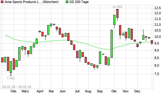Mit dem Rücksetzer auf 9,36 EUR hat die ANTA Sports Products-Aktie am 02.01.2025 die 200-Tage-Linie nach unten gekreuzt.