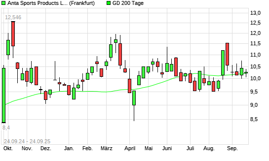 Mit dem Rücksetzer auf 10,10 EUR hat die ANTA Sports Products-Aktie am 23.09.2025 die 200-Tage-Linie nach unten gekreuzt.