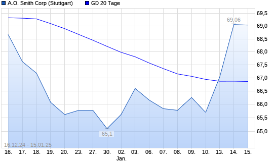 Mit dem Anstieg auf 66,86 EUR hat die A.O. Smith-Aktie am 14.01.2025 die 20-Tage-Linie nach oben gekreuzt.