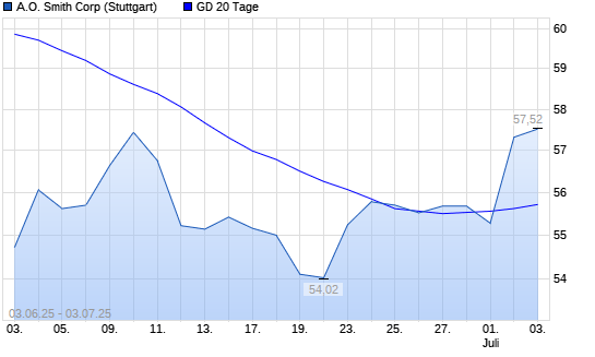 Mit dem Anstieg auf 57,40 EUR hat die A.O. Smith-Aktie am 02.07.2025 die 20-Tage-Linie nach oben gekreuzt.