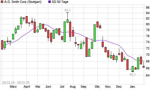Mit dem Anstieg auf 68,22 EUR hat die A.O. Smith-Aktie am 28.01.2025 die 50-Tage-Linie nach oben gekreuzt.