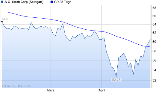 Mit dem Anstieg auf 59,56 EUR hat die A.O. Smith-Aktie am 02.05.2025 die 38-Tage-Linie nach oben gekreuzt.Die A.O. Smith-Aktie befindet sich seit dem 14.10.2024 im ...weiterlesen