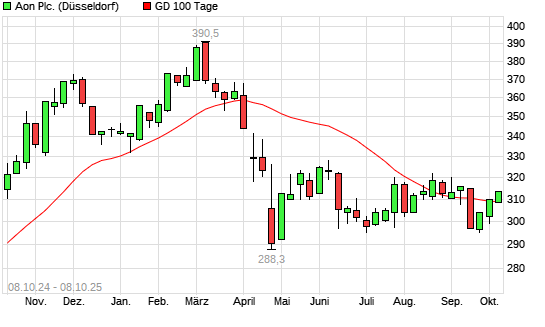 Mit dem Anstieg auf 311,30 EUR hat die AON-Aktie am 07.10.2025 die 100-Tage-Linie nach oben gekreuzt.