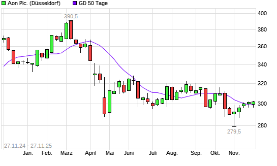 Mit dem Anstieg auf 301,50 EUR hat die AON-Aktie am 26.11.2025 die 50-Tage-Linie nach oben gekreuzt.