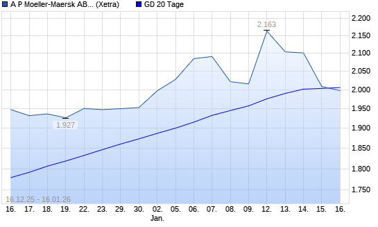 Mit dem Rücksetzer auf 1.980,50 EUR hat die AP Moeller-Maersk B-Aktie am 15.01.2026 die 20-Tage-Linie nach unten gekreuzt.