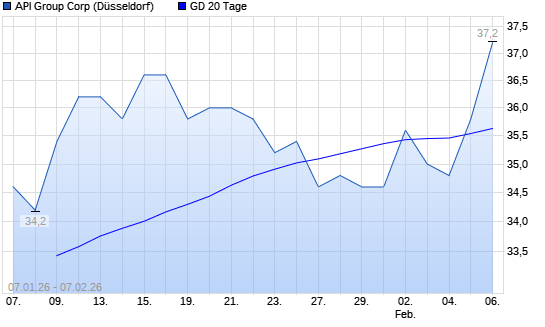 Mit dem Anstieg auf 36,00 EUR hat die API Group-Aktie am 06.02.2026 die 20-Tage-Linie nach oben gekreuzt.