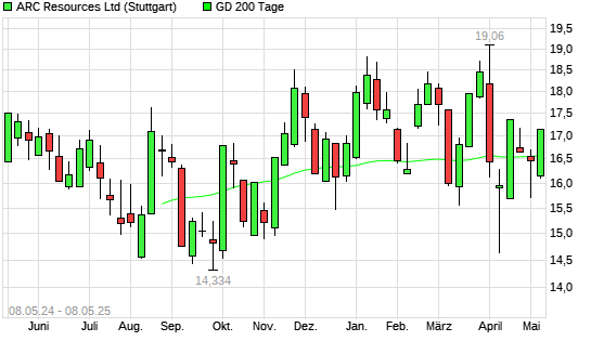 Mit dem Anstieg auf 16,86 EUR hat die ARC Resources-Aktie am 07.05.2025 die 200-Tage-Linie nach oben gekreuzt.