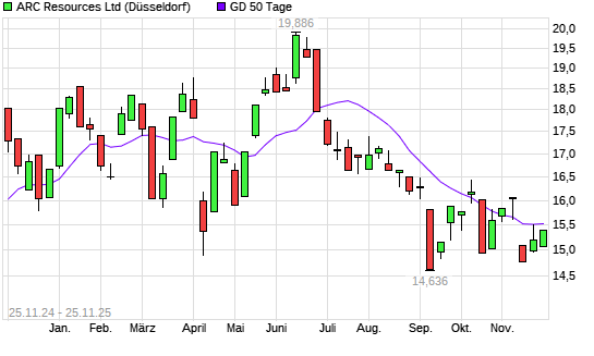 Mit dem Anstieg auf 15,56 EUR hat die ARC Resources-Aktie am 24.11.2025 die 50-Tage-Linie nach oben gekreuzt.