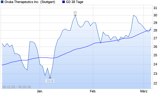 Mit dem Rücksetzer auf 27,60 EUR hat die ARCAbiopharma-Aktie am 04.03.2026 die 38-Tage-Linie nach unten gekreuzt.