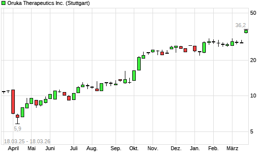 Mit dem Anstieg auf 36,00 EUR hat die ARCAbiopharma-Aktie (ISIN US6876041087) am 17.03.2026 ein neues 5-Jahres-Hoch erreicht und damit den Kurs vom 16.03.2026 ...weiterlesen