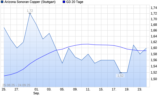 Mit dem Anstieg auf 1,64 EUR hat die ARIZONA SONORAN COPPER-Aktie am 23.09.2025 die 20-Tage-Linie nach oben gekreuzt.