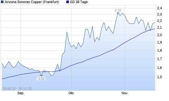 Mit dem Anstieg auf 2,16 EUR hat die ARIZONA SONORAN COPPER-Aktie am 19.11.2025 die 38-Tage-Linie nach oben gekreuzt.