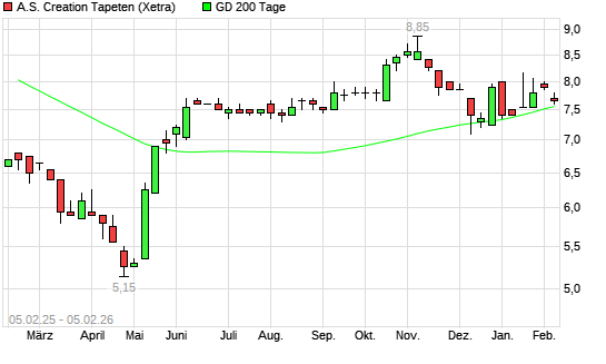 Mit dem Rücksetzer auf 7,15 EUR hat die A.S. Creation Tapeten-Aktie am 04.02.2026 die 200-Tage-Linie nach unten gekreuzt.