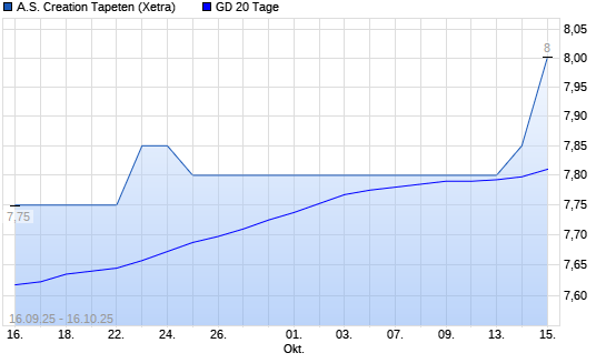 Mit dem Anstieg auf 7,60 EUR hat die A.S. Creation Tapeten-Aktie am 15.10.2025 die 20-Tage-Linie nach oben gekreuzt.Die A.S. Creation Tapeten-Aktie befindet sich seit dem 20.05.2025 im langfristigen ...weiterlesen