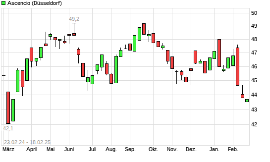 Mit dem Rücksetzer auf 43,70 EUR hat die ASCENCIO-Aktie (ISIN BE0003856730) am 17.02.2025 ein neues 6-Monats-Tief erreicht und damit den Kurs vom 14.02.2025 eingestellt.
