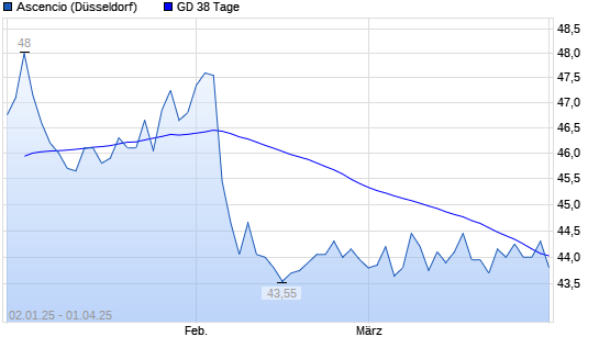 Mit dem Anstieg auf 44,45 EUR hat die ASCENCIO-Aktie am 31.03.2025 die 38-Tage-Linie nach oben gekreuzt.