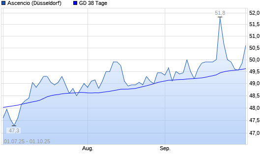 Mit dem Anstieg auf 49,90 EUR hat die ASCENCIO-Aktie am 30.09.2025 die 38-Tage-Linie nach oben gekreuzt.