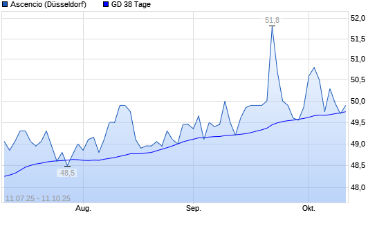 Mit dem Anstieg auf 50,00 EUR hat die ASCENCIO-Aktie am 10.10.2025 die 38-Tage-Linie nach oben gekreuzt.