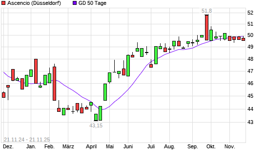 Mit dem Anstieg auf 50,10 EUR hat die ASCENCIO-Aktie am 20.11.2025 die 50-Tage-Linie nach oben gekreuzt.