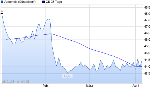 Mit dem Rücksetzer auf 44,15 EUR hat die ASCENCIO-Aktie am 03.04.2025 die 38-Tage-Linie nach unten gekreuzt.