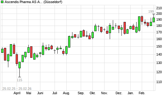 Mit dem Anstieg auf 198,00 EUR hat die ASCENDIS PH.SP.ADR 1 DK 1-Aktie (ISIN US04351P1012) am 24.02.2026 ein neues All-Time-High erreicht und damit den Kurs vom 28.01.2026 eingestellt.