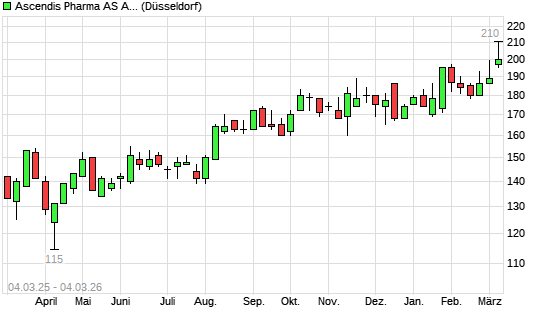 Mit dem Anstieg auf 206,00 EUR hat die ASCENDIS PH.SP.ADR 1 DK 1-Aktie (ISIN US04351P1012) am 03.03.2026 ein neues All-Time-High erreicht und damit den Kurs vom 02.03.2026 eingestellt.