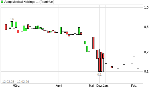 Mit dem Anstieg auf 0,19 EUR hat die ASEP MEDICAL HOLDINGS-Aktie (ISIN CA04368A2048) am 11.02.2026 ein neues 6-Monats-Hoch erreicht und damit den Kurs vom 02.02.2026 eingestellt.