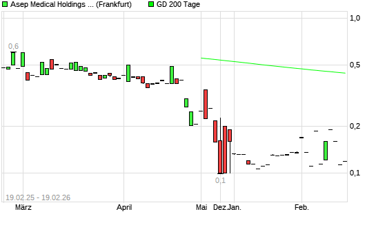 Mit dem Rücksetzer auf 0,11 EUR hat die ASEP MEDICAL HOLDINGS-Aktie am 18.02.2026 die 200-Tage-Linie nach unten gekreuzt.Die ASEP MEDICAL HOLDINGS-Aktie befand sich seit ...weiterlesen