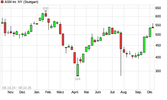 Mit dem Anstieg auf 555,00 EUR hat die ASM International-Aktie (ISIN USN070451026) am 07.10.2025 ein neues 6-Monats-Hoch erreicht und damit den Kurs vom 27.06.2025 eingestellt.