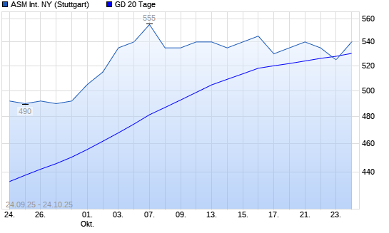 Mit dem Rücksetzer auf 525,00 EUR hat die ASM International-Aktie am 23.10.2025 die 20-Tage-Linie nach unten gekreuzt.