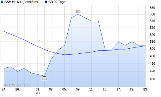 Mit dem Rücksetzer auf 500,00 EUR hat die ASM International-Aktie am 22.12.2025 die 20-Tage-Linie nach unten gekreuzt.