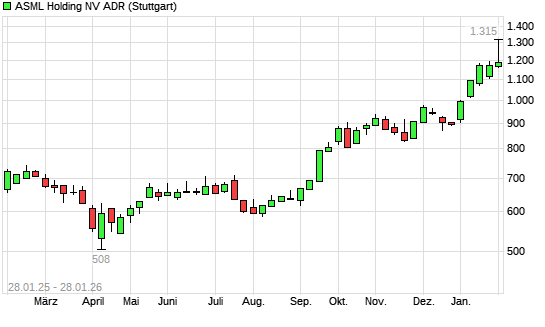 Mit dem Anstieg auf 1.220,00 EUR hat die ASML-Aktie (ISIN USN070592100) am 27.01.2026 ein neues All-Time-High erreicht und damit den Kurs vom 26.01.2026 eingestellt.