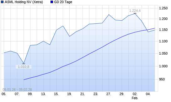 Mit dem Rücksetzer auf 1.133,40 EUR hat die ASML Holding-Aktie am 04.02.2026 die 20-Tage-Linie nach unten gekreuzt.